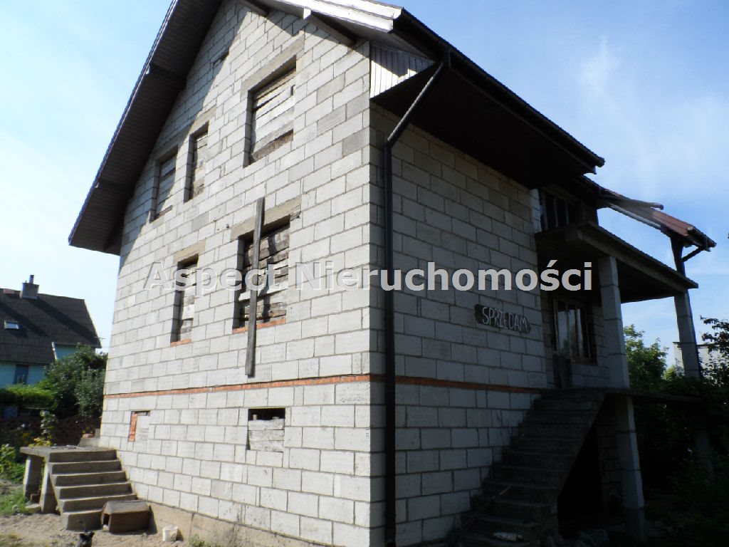 Nieruchomość w stanie surowym otwartym, wybudowana w 2005r. Składa się z: salonu, pięciu pokoi, kuchni, dwóch łazienek, kotłowni, piwnicy, pomieszczenia gospodarczego oraz garażu w bryle budynku.