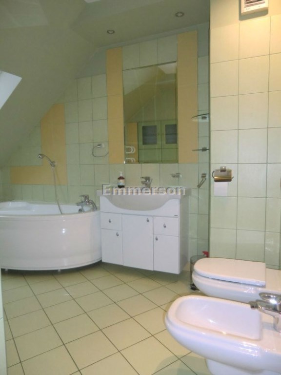 Nieruchomość usytuowana na I piętrze. Znajduje się tu przestronny salon z kominkiem, zabudowana kuchnia, jadalnia oraz wc. Na drugim poziomie mamy do dyspozycji dwie sypialnie, pokój kąpielowy, oddzielnia łazienka z kabiną prysznicową oraz obszerny przedpokój zabudowany pakowna szafą.
