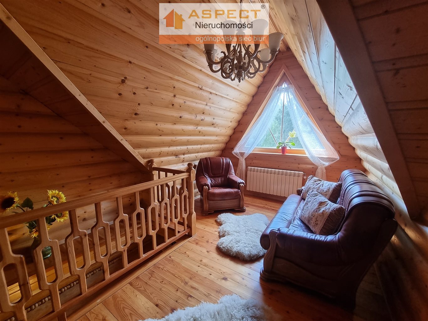 Przedmiotem sprzedaży jest elegancki dom z bali w stylu góralskim. Budynek z 2009 roku, budowany w wysokiej klasy materiałów. Na powierzchnię 163 m2 składają się dwa poziomy: