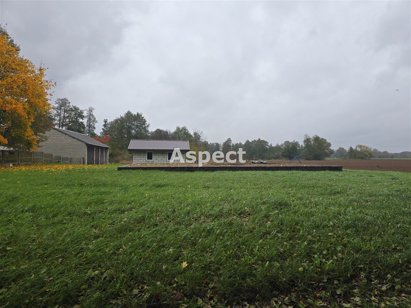 Na posesji znajduje się murowany garaż, sad owocowy i fundamenty pod budowę domu (wg projektu Dom w Jeżynach 2).